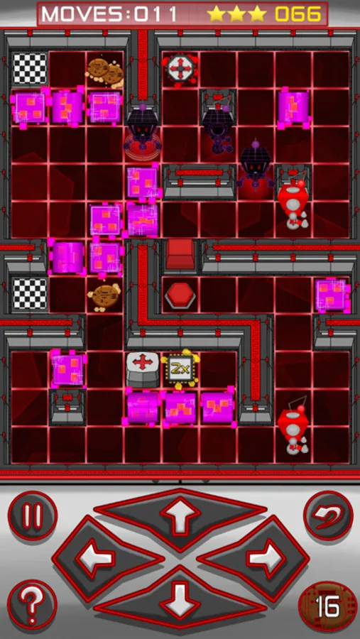 You must guide your OBIO Bots through each level without either of them being destroyed. Both OBIO Bots move at the same time though, so choose your moves carefully!