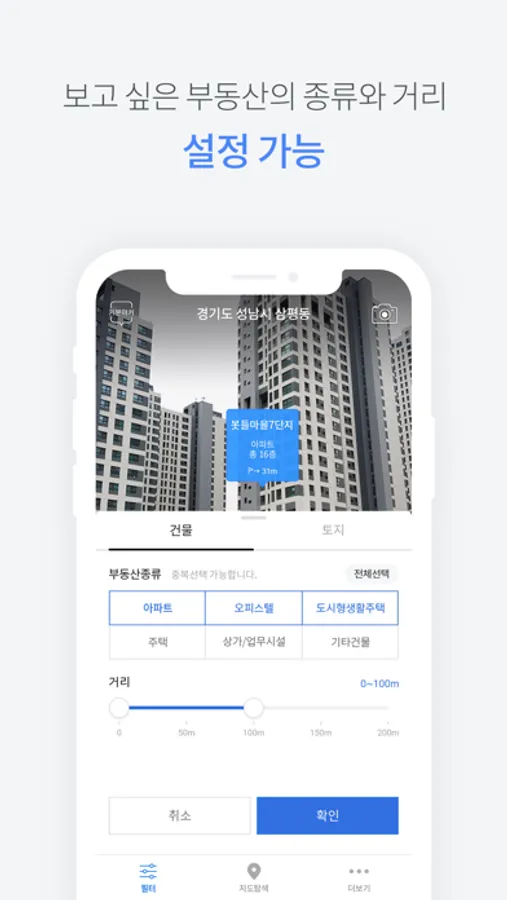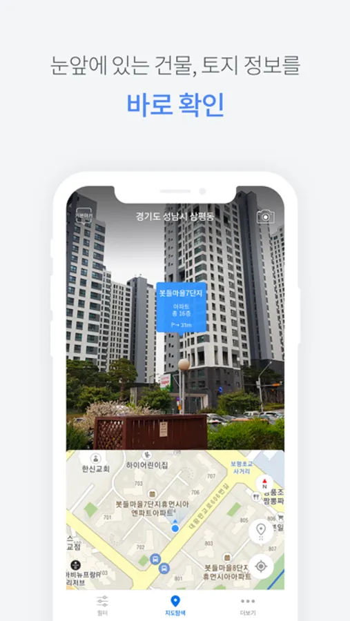 ◆ 부동산GO를 실행해 알고싶은 건물/토지를 비춰보세요!