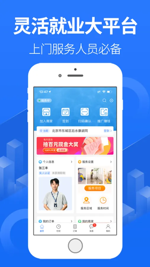 用上单,找到好工作!上单将为每个服务者建立一套持久的诚信服务档案,优秀服务者可获得大量服务商的合作邀约,在线签约,一键入职,在家自由接单,收入稳定丰厚。