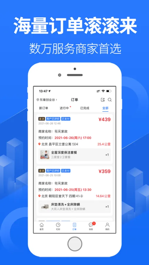 用上单,订单滚滚来!上单不仅可以获得来自“到位”上门服务平台的大量订单,还打通了微信/支付宝/百度/今日头条/京东/淘宝/天猫/口碑等各大订单来源渠道,以及各大服务商通过各种渠道获取的订单,都能通过上单就近派发给使用上单APP的服务者。
