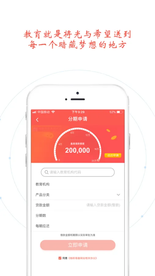 咖啡易融APP是一款专业致力于,为全体奋斗者学习梦想提供强有力帮扶的教育分期工具,打开APP点击"我要分期"申请您专属的教育分期,让先接受教育,后为知识买单不是梦。您的申请全程受法律保护,咖啡易融APP将互联网的快捷和互联网的安全性合二为一,真正实现,想学就学,安全无害。咖啡易融为梦想而生,改变只需要一杯咖啡的时间。
