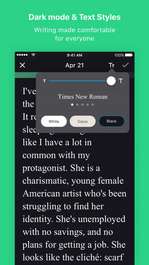 Featuring a simple but beautiful ad-free interface, the app will help you develop and maintain a daily writing practice by offering gentle reminders and motivation. You can track your progress over time, earn badges for your achievements along the way, and access deep insights into the emotional and topical content of your writing.