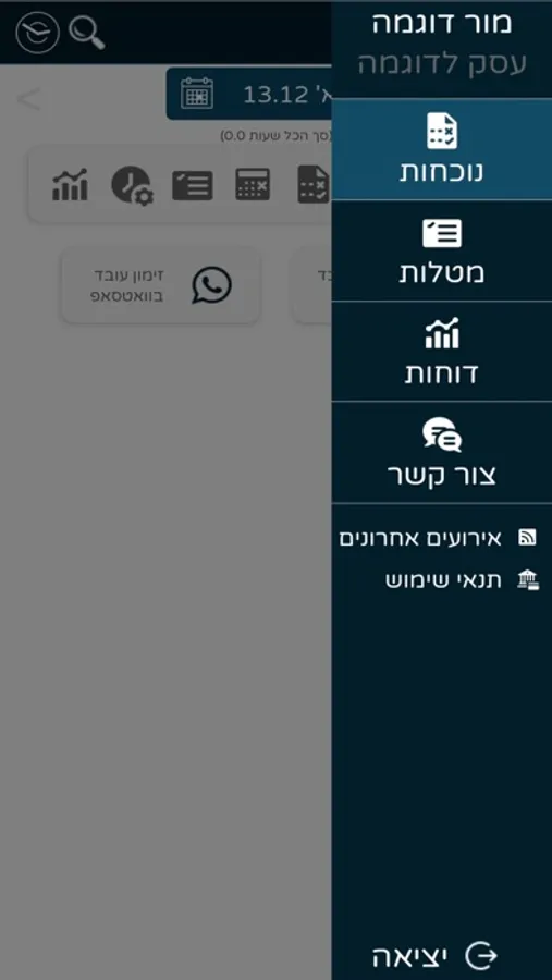 המערכת יודעת אם העובד מדווח ממקום העבודה או לא. המערכת תומכת בסוגי דיווחים נוספים מעבר לנוכחות.