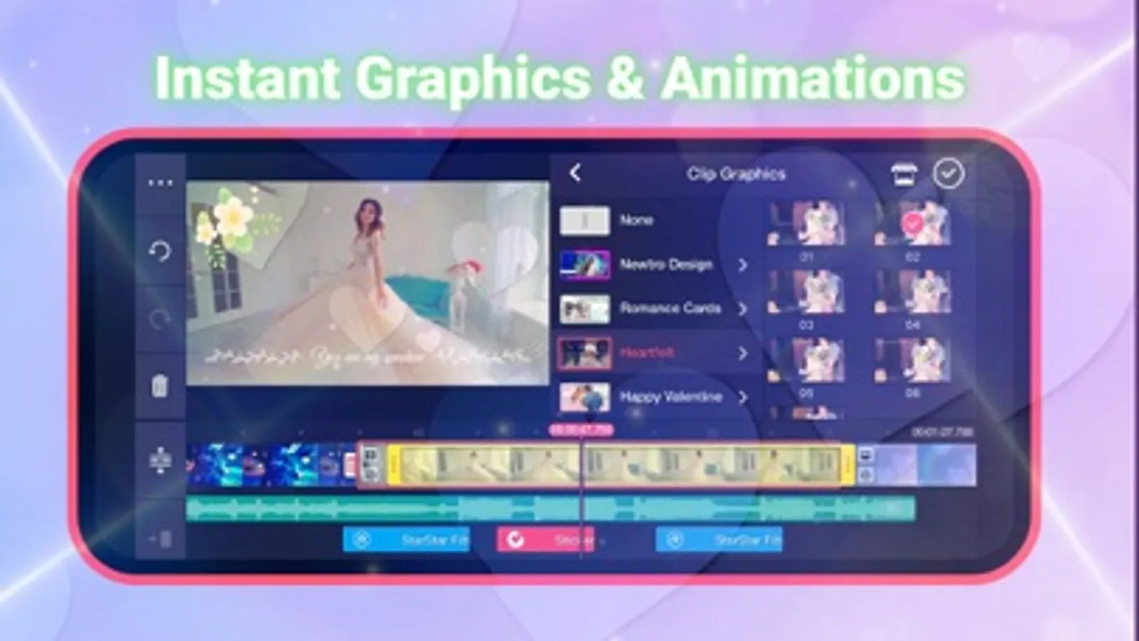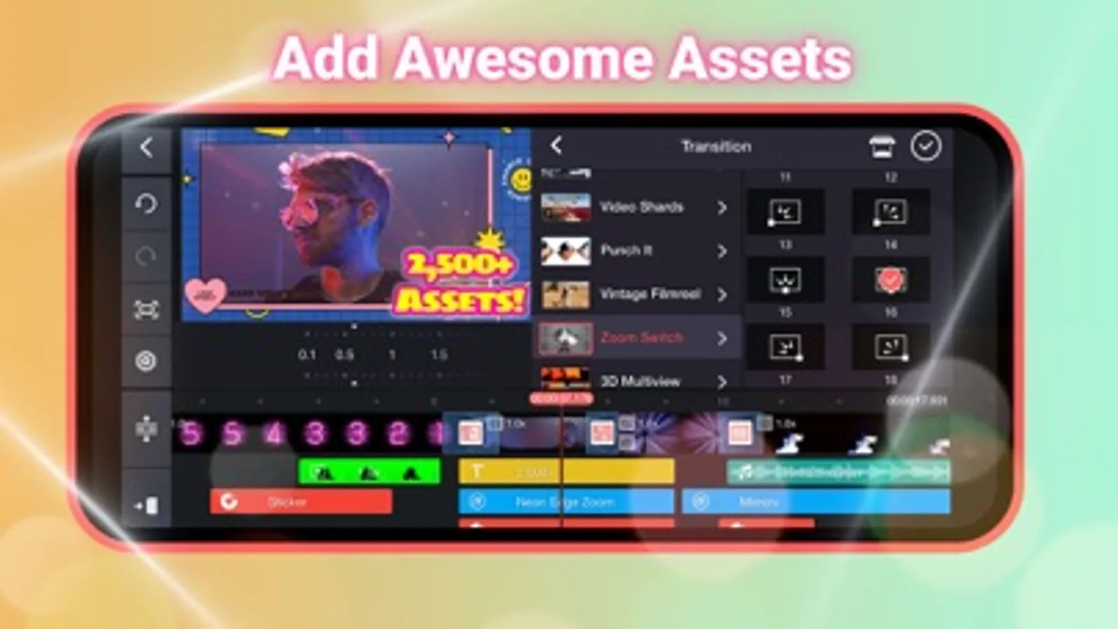 • Lots of searchable, downloadable transitions, effects, videos & images, stickers, fonts, and animations from the KineMaster Asset Store