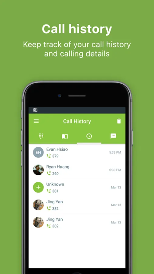 - Complete call history at your finger tip including any missed calls