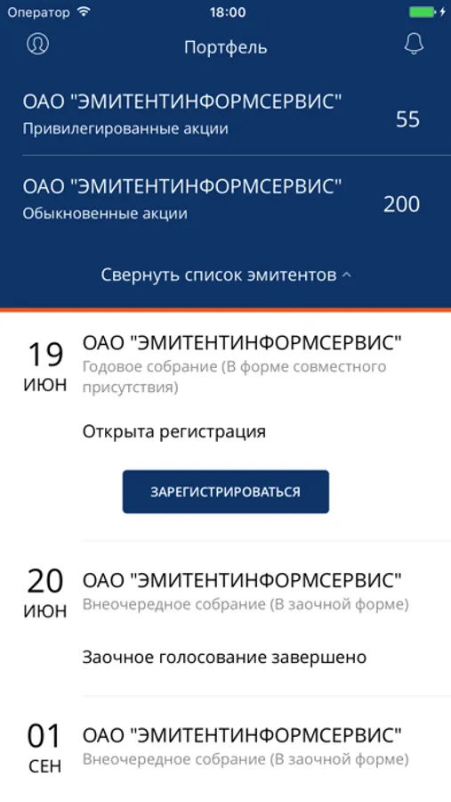 Реестр-Онлайн — личный кабинет акционера, с помощью которого можно принимать участие в собраниях акционеров и голосовать удалённо. Приложение предназначено только для акционеров компаний, которые обслуживаются у регистратора АО «Реестр».