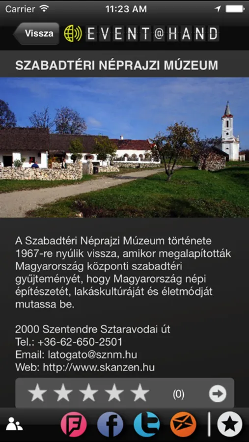 További hasznos funkciók: Kedvenc események és helyszínek listája, értékelése és megosztása.