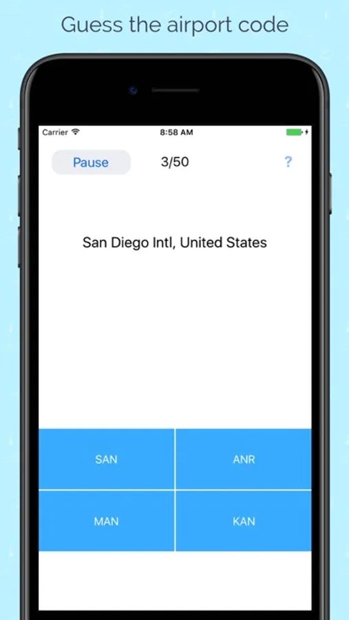 Just choose the correct airport code and compare your knowledge about airports in the worlds.