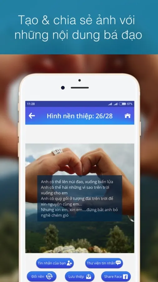 - Dễ dàng tạo ảnh thiệp chia sẻ cảm xúc để đăng lên facebook