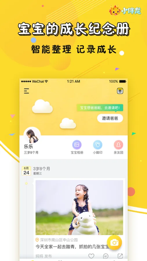 云朵树,宝宝的成长纪念册,由儿童早教品牌“小伴龙”出品,专为孩子父母打造的亲子相册应用。