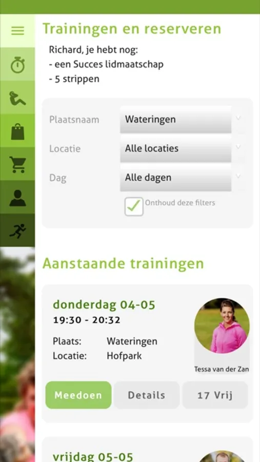 Stel eenmalig een zoekfilter in en zie jouw favoriete training altijd bovenaan staan, hierdoor gaat het reserveren van een training een stuk sneller!