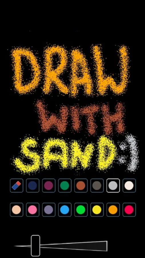 Play with the moving sand, use it to your advantage to get a smooth color mixing or fight against it to make a solid shapes.
