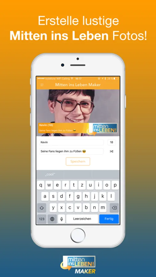 Mit der Mitten ins Leben App kannst du kostenlose, lustige Bilder mit dem Mitten ins Leben Banner verschönern.