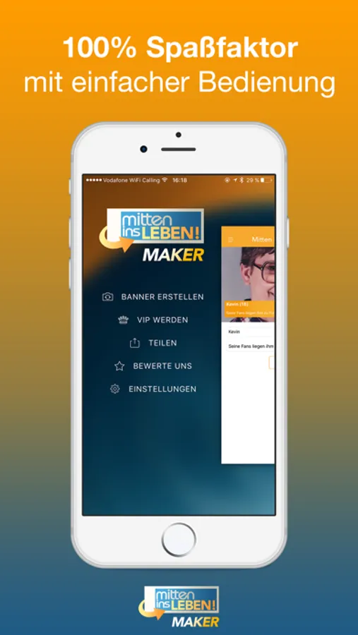 Täusche deine Freunde oder erstelle lustige Fotos und Videos (bald) mit dem Mitten im Leben Banner.