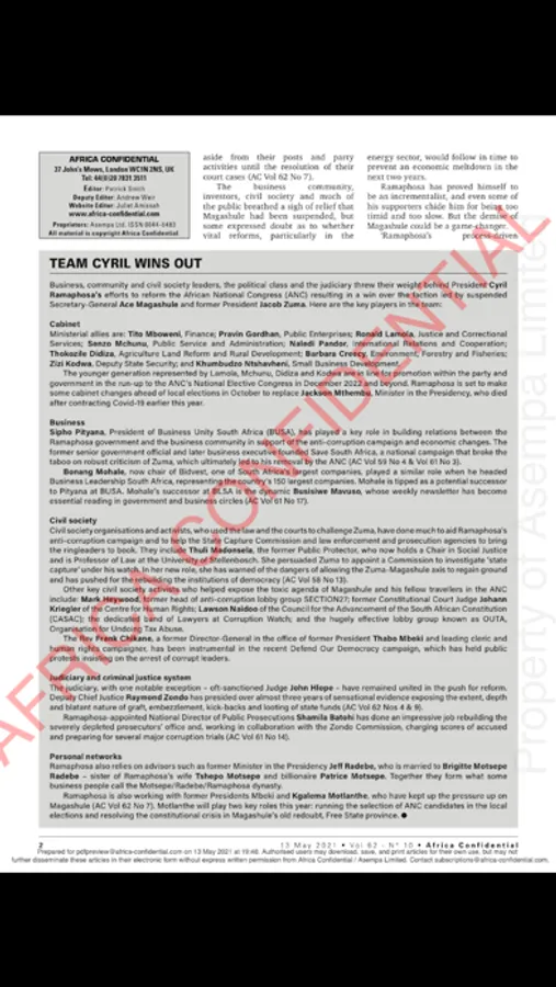 Africa Confidential provides the most authoritative commentary and analysis of political and economic affairs from throughout the continent. Published regularly since 1960.