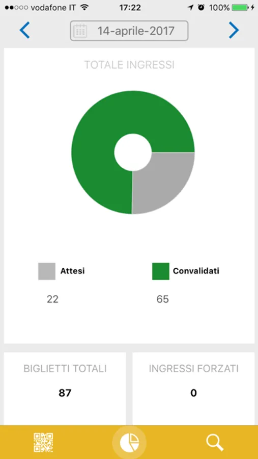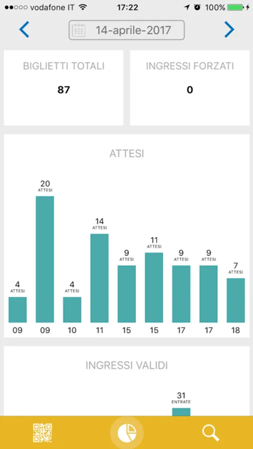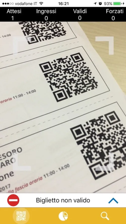 - Scanner di convalida. La modalità scanner consente di convalidare velocemente gli ingressi dei visitatori, attraverso la scansione del QR Code presente sul biglietto del visitatore. È possibile leggere il QR Code anche sulle versioni elettroniche dei biglietti, mostrate direttamente dagli schermi dei dispositivi dei visitatori