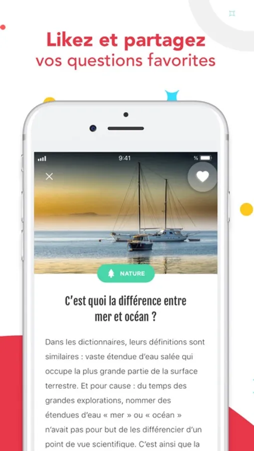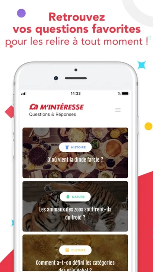 Stockez vos Questions & Réponses favorites directement dans votre application pour relire et partager vos nouveaux savoirs quand vous le voulez.