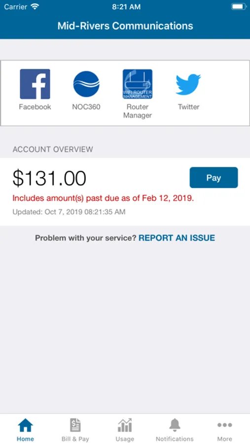 My Mid-Rivers provides members account management at their fingertips. Members can view their usage and billing, manage payments, notify member service of account and service issues and receive special messaging from Mid-Rivers Communications.