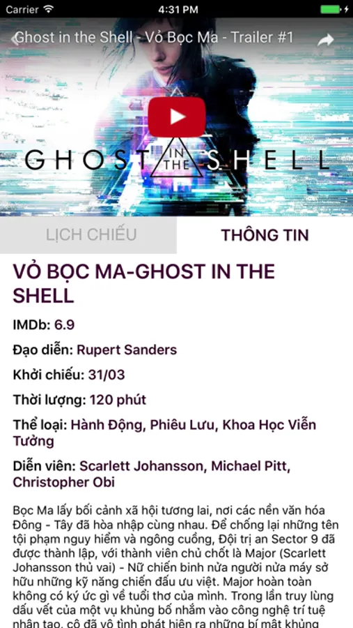 - Xem trailer, poster, thông tin phim rõ ràng ngay bên trong ứng dụng.