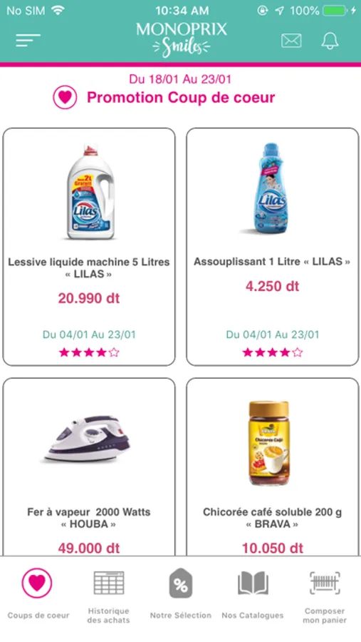 Avec l’application Monoprix Smiles vous pouvez accéder en ligne au programme de fidélité et bénéficier de tous ses avantages, tout au long de l’année Où que vous soyez, consultez vos points ainsi que le catalogue et les promos coup de cœur via votre smartphone.