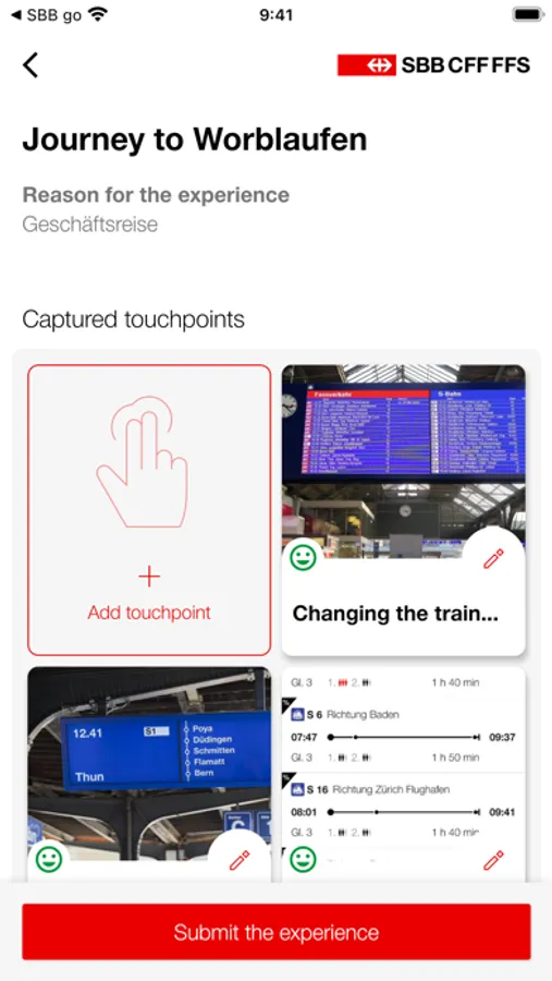 As a study participant, you can use the SBB go app to record your Customer Journey and evaluate SBB Touchpoints along your journey.