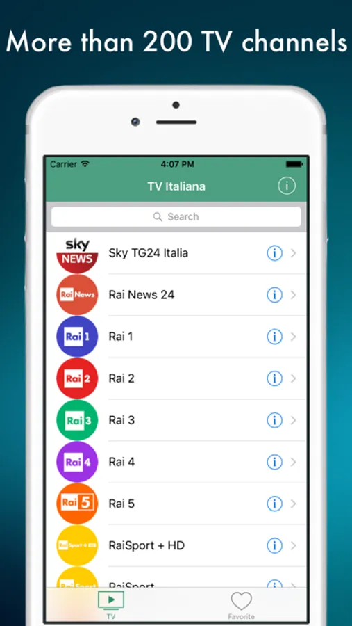 Install a mobile application TV Italiana! Sometimes there are situations when you need to watch TV online some channel. If you're behind a stationary computer or watching TV - it's not a problem, but if you're on vacation or on the road, then mobile app TV Italiana will help you. TV Italiana broadcasts the most popular Italian TV channels via the Internet.