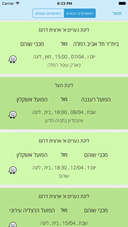 המידע כולל: משחקים עתידיים כולל קישור לוייז להגעה למגרש וקבלת התראות על שינויים בשעת המשחק והמגרש, תוצאות עבר של הקבוצה שלך ושל הקבוצות היריבות, טבלאות ליגה ועוד.