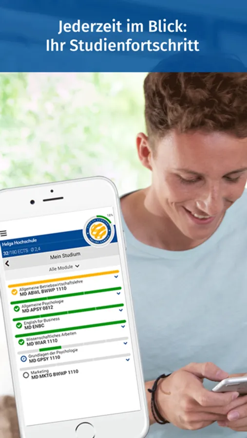 Die App „Mein Campus“ bietet Ihnen alles, was Sie zum mobilen Studieren brauchen. Mit nur einem Klick haben Sie Ihren aktuellen Studienfortschritt im Blick und können die wichtigsten Funktionen des Online-Campus ganz bequem unterwegs nutzen.
