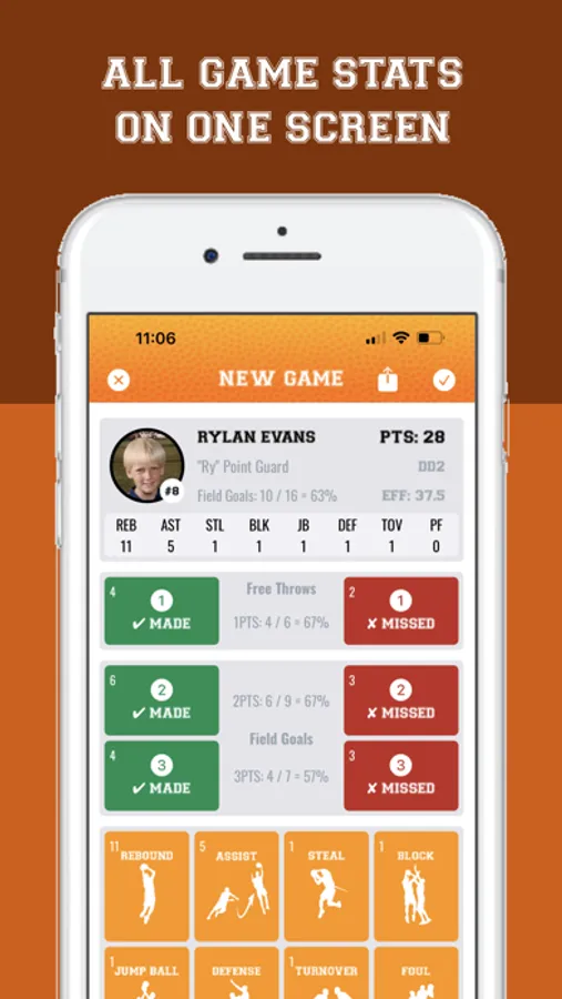A mobile app for parents or fans who want a simple way to track and share basketball game statistics of a family member or friend. Good for all ages: Parents of children, coaches of youth, and friends of teenagers. Easy, with one-page view so you can enjoy the game while keeping simple stats.