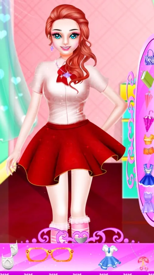 To have a romantic love in campus will be very amazing for this beautiful girl. Today she will have a date with one handsome boy. She has expected this day for a long time. Now she needs to make up beautifully and leave a good impression on the boy. Come to be her fashion stylist and help her dress up nice for the dating.