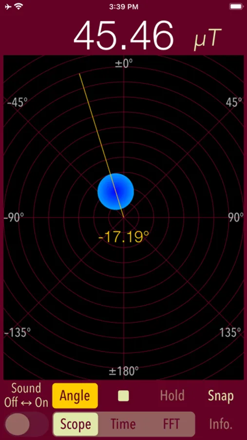 The display position of the graphic circle, but will move to match the polarity of the magnetic source, the polarity is attracted towards the N-pole if it is the same direction as the geomagnetic field, polarity is reversed away if it is the opposite (S-pole). If there is no metal or magnetic field nearby, it will be shifted in the direction of the geomagnetism (N-pole).
