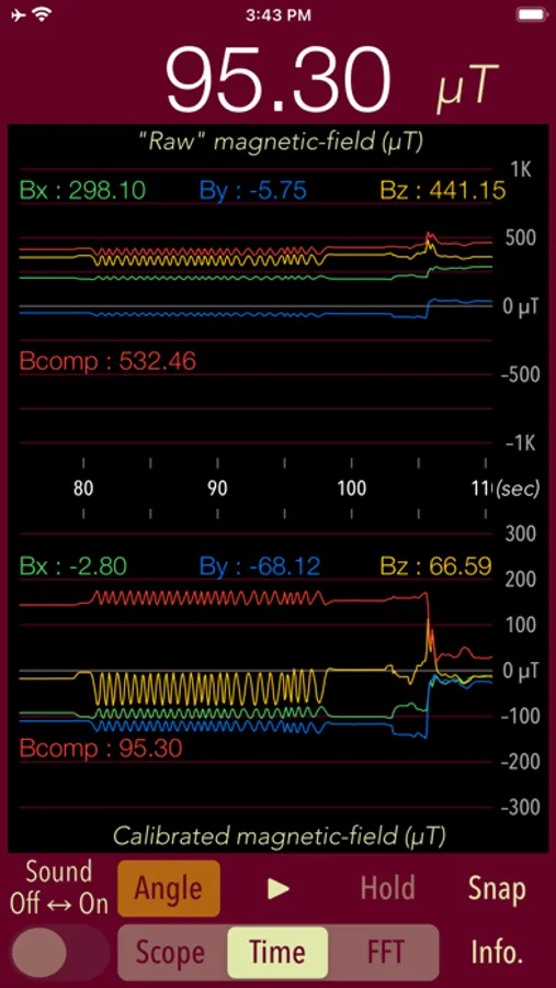 - Graphical display of magnetic field observation by magnetic sensor (Scope)
