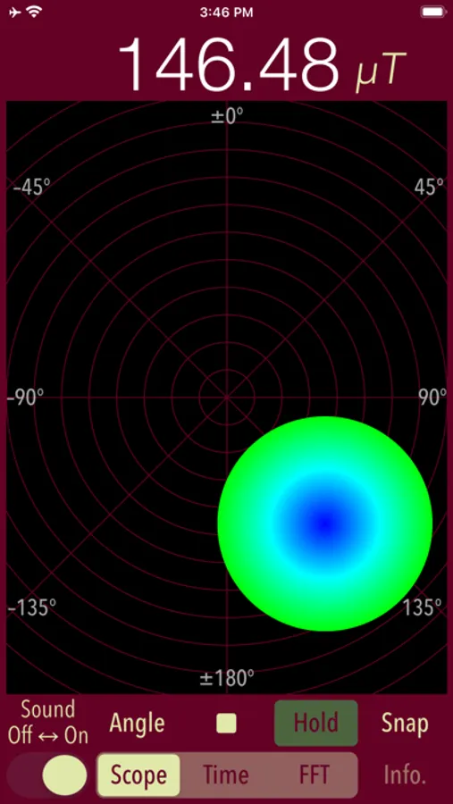 In Scope, the magnetic flux density of the magnetic field is expressed by the size and color of the graphic circle.