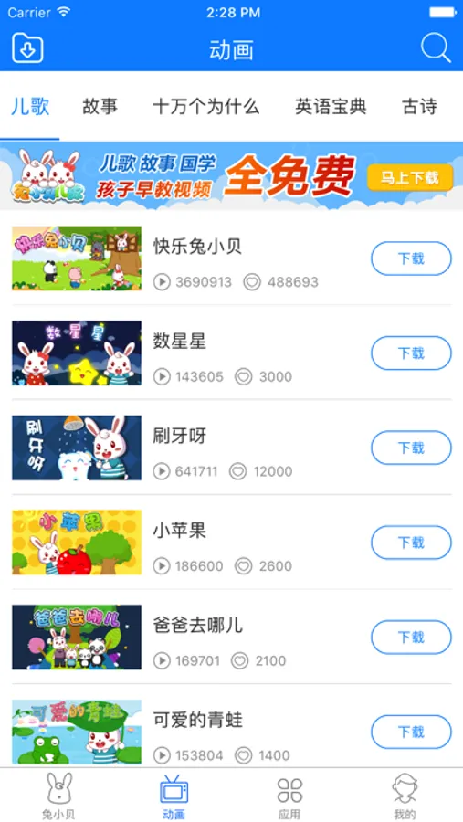 【原创动画视频】海量儿歌,儿童故事,国学,三字经,弟子规,古诗,十万个为什么,英语宝典,学数字等精品内容免费看看看!每星期都有最新内容提供哦~
