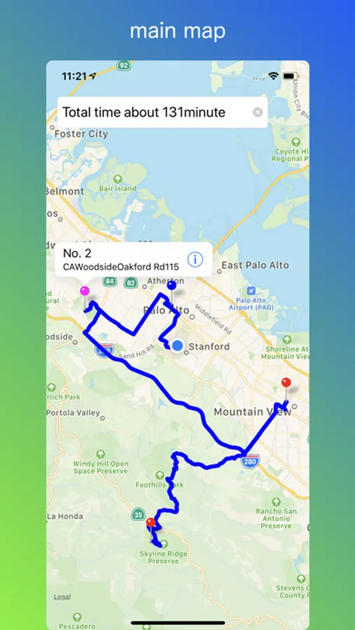 When multiple pins are pierced, the order of turning around the destination is automatically swapped, and the route of turning all the pins at the shortest is displayed.