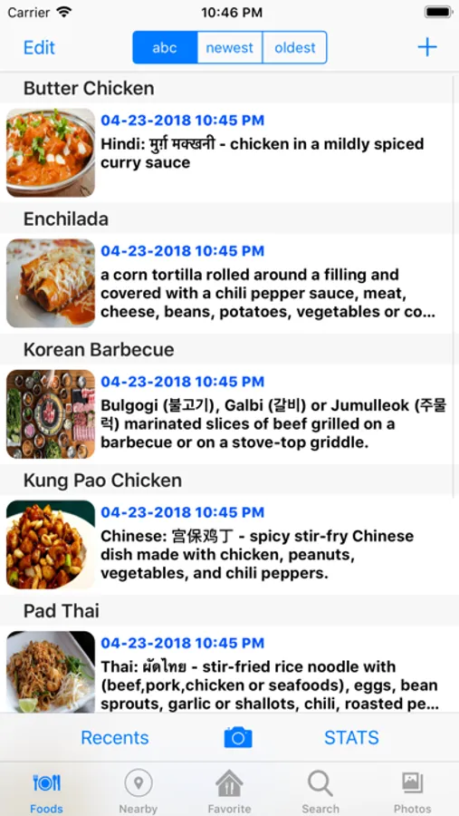 * Helps avoiding eating the same dish many times that you have not notice if you using this app. It records date and time for each time you picked something for your meal.