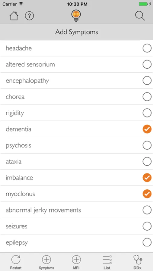 **Neurology Dx provides free access to limited symptoms and signs for generating differentials without subscription. A subscription provides unlimited point of care access to the app(more than 600 symptoms, signs and MRI findings to choose from).