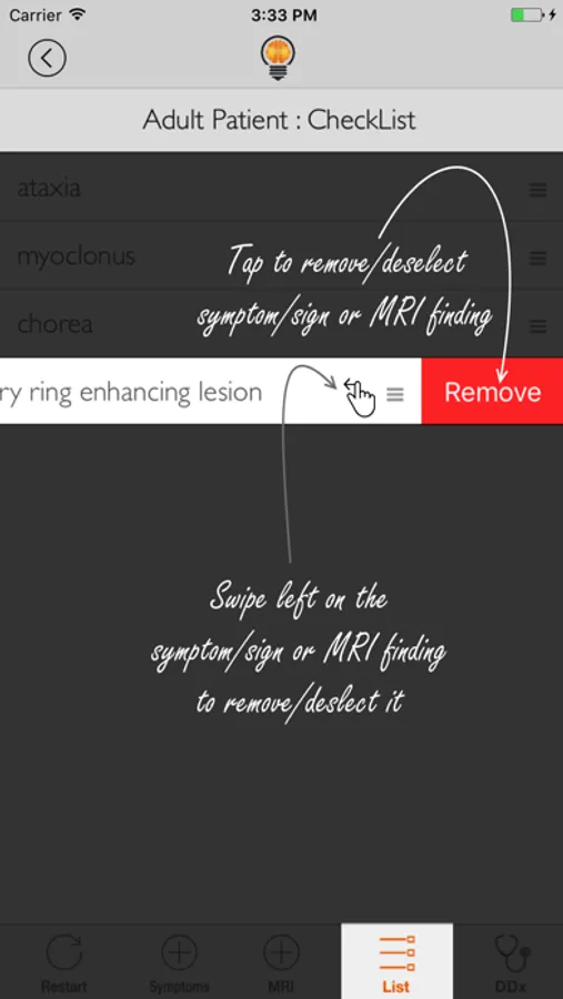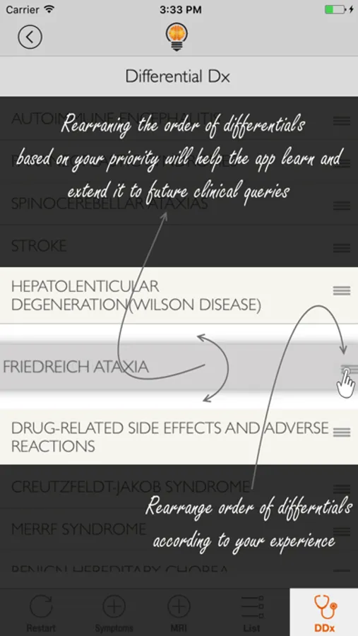 * Deleting any app suggested differential (pinching action on the differential to be deleted) will result in the app suggesting a new possible differential.