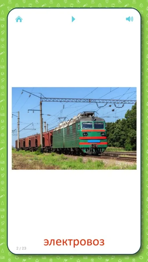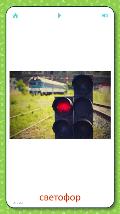 • Более 80 карточек на темы «Железная дорога», «Транспорт», «Домашние животные», «Погода и времена года»