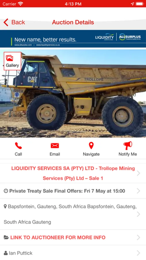 The South African Institute of Auctioneers (SAIA) is the national association for auctioneers and the stakeholders and clients of the auctioneering industry in South Africa. The purpose of the SAIA Auction Search APP is to allow users to search for, view and receive notifications of auctions and items on auction listed by SAIA member auctioneers