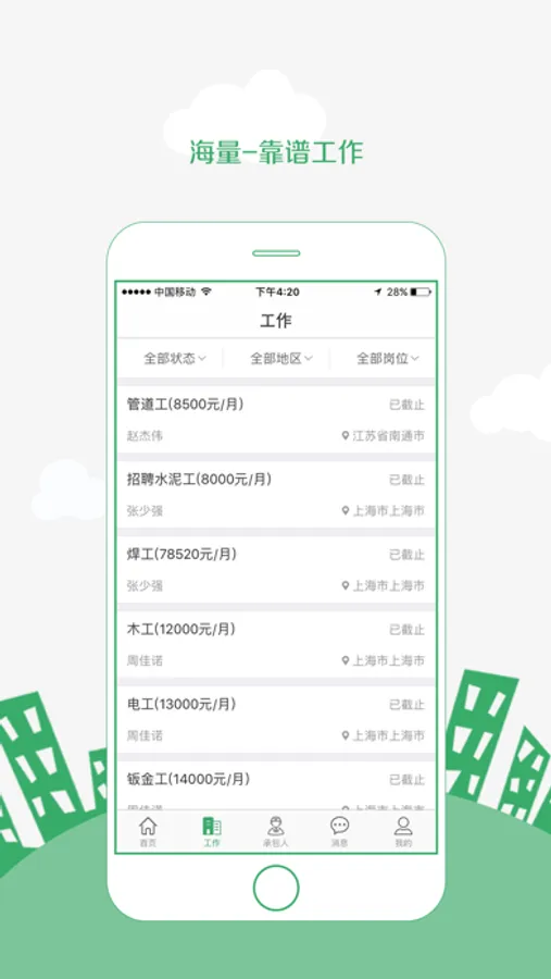 2.靠谱工作:各类工种用工需求,帮助建筑从业者找到对口工作。