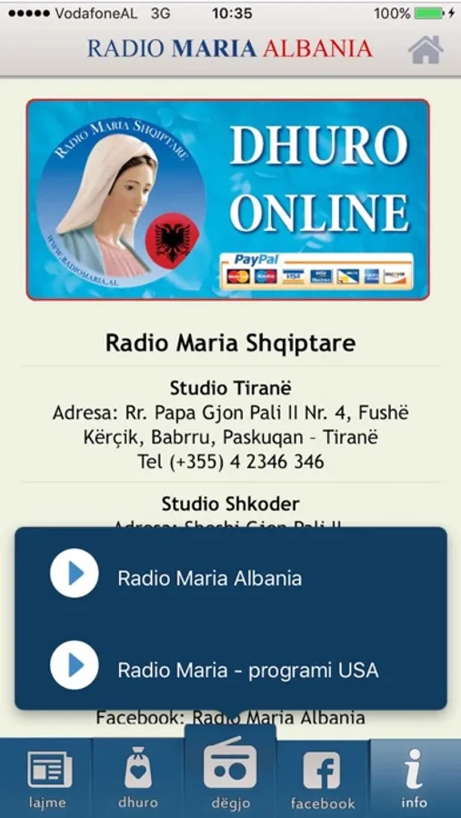 Radio Maria Albania app is a great tool to listen Radio Maria live (the main program and the program for America) and to get informed with its latest activities. You can also find the daily Liturgy of the Hours, the Liturgy of the Word and other useful informations which help everyone to be good christians.