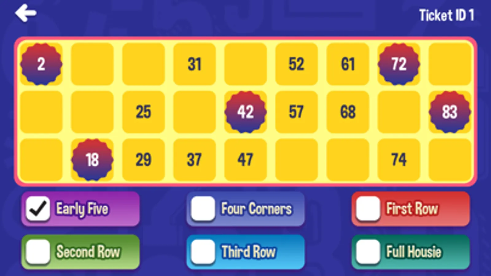 The aim of the game is to mark all the numbers in the ticket (on each of the player’s respective devices) as called by the caller.