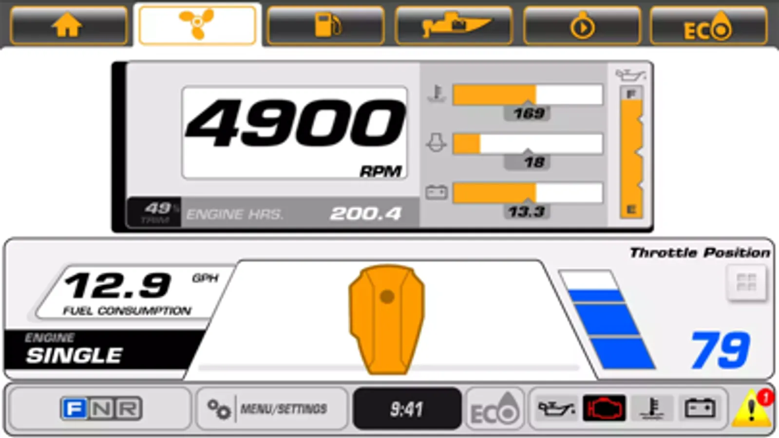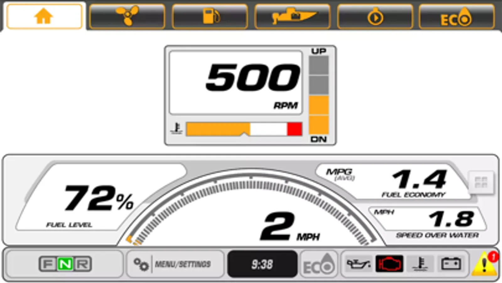 • Provides ECO View function to monitor average fuel economy, estimated range and instantaneous fuel use to maximize boat efficiency.