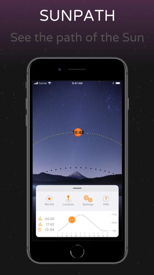 SunPath allows you to see the path of the sun through your camera at any given moment. Just point your camera to the sky and it will display the sun’s movement.