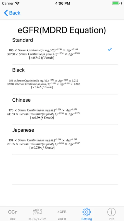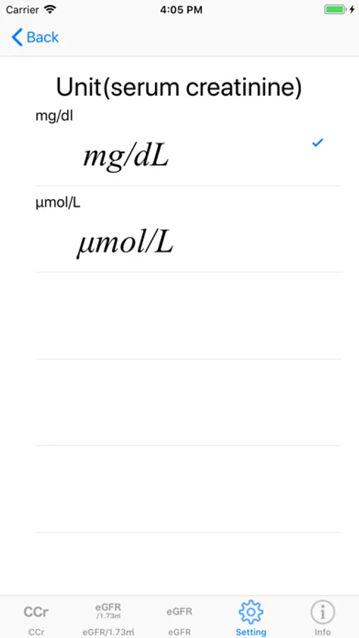 The unit of serum creatinine can be selected from mg / dL and μmol / L.