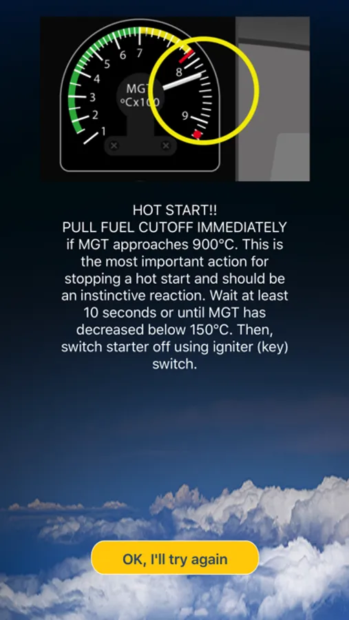 - Hot Start (you will need to do the correct actions to abort the start correctly)