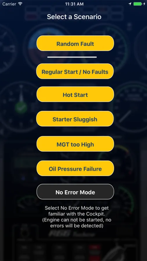 Also there is an 'No Error Mode' This enables you to try all buttons, do all checks without any consequences. CFIs can use this mode to setup scenarios for their students.