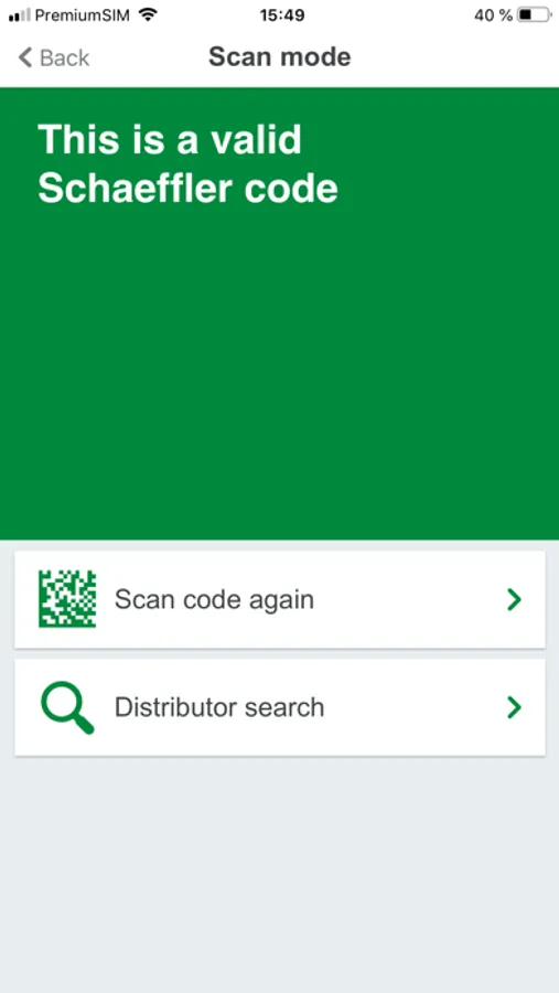 When scanning the Schaeffler OneCode on dealer certificates, the originality of the Schaeffler OneCode can be checked on the one hand and the corresponding sales partner can be displayed and contacted directly via the Schaeffler website on the other hand.