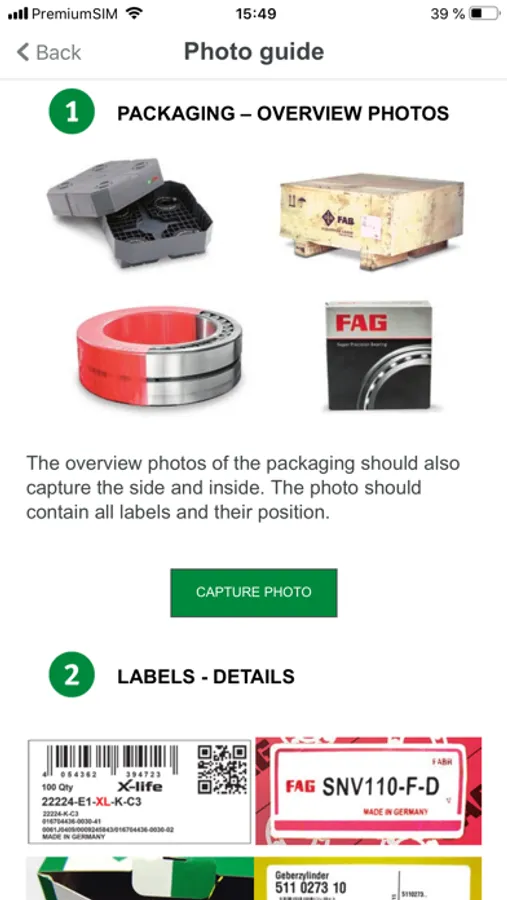 The most important functionalities for the user of the Schaeffler OriginCheck app are:
